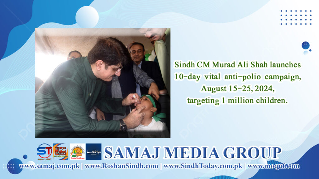 KARACHI (Samaj Media Group): Sindh Chief Minister Syed Murad Ali Shah launched a crucial 10-day polio eradication campaign aimed at immunising over 1.1 million children under five in 85 union councils of the city.